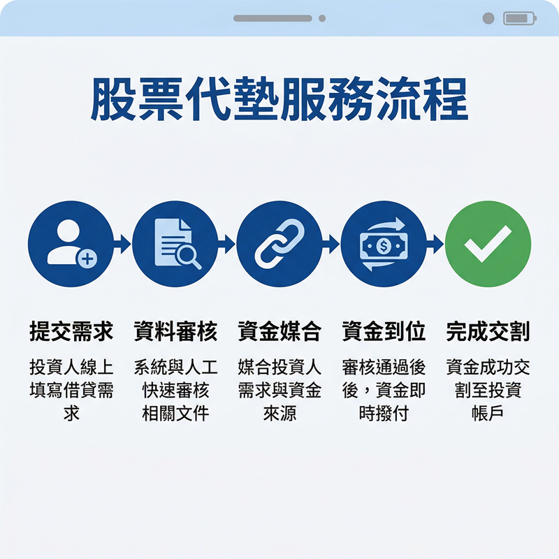 本公司專注於股票代墊與違約交割代墊媒合服務,致力於協助投資人於資金需求緊急時,快速找到合適資金來源。我們提供安全、保密且高效率的資金媒合機制,無論是股票交割資金不足、短期周轉需求,皆可提供專業協助。服務流程簡單透明,重視客戶隱私與風險控管,協助您在市場波動中穩定資金調度,是投資人值得信賴的資金媒合平台。